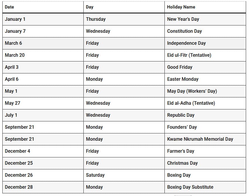 Ghana Public Holidays 2026